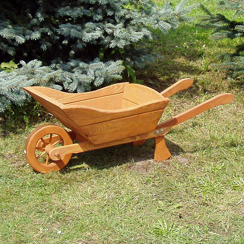 Eine gro?e Schubkarre aus echtem Fichtenholz. Auch andere Holzarten sind gegen Aufpreis m?glich. Mit Echtheitszertifikat und 10 Jahren Garantie.